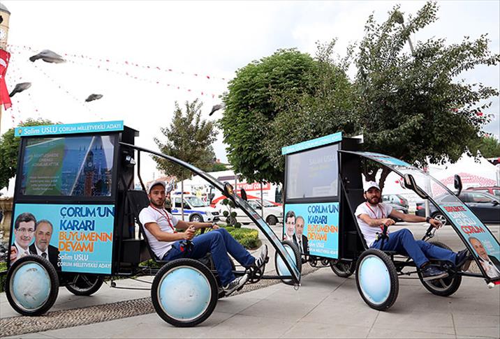 AK Parti Çorum Milletvekili ve TBMM İdare Amiri Salim Uslu, seçim çalışmalarında çevre dostu araçlar kullanıyor.