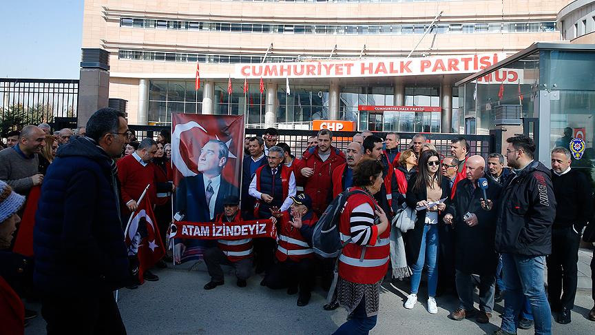 Kendilerini karşılayarak dinlemeye gelen tek bir parti yöneticisinin dahi olmamasını eleştiren Otlu ve beraberindekiler, daha sonra yanlarından getirdikleri metni CHP Genel Merkezi'nin duvarına bırakarak partinin önünden ayrıldı.