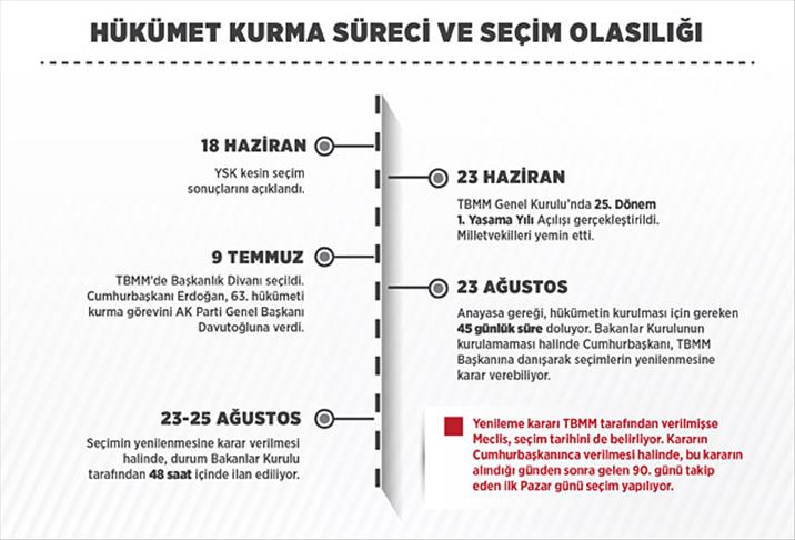 Cumhurbaşkanı Recep Tayyip Erdoğan'ın Anayasa gereği, Başbakan Davutoğlu'na hükümeti kurmak için verdiği 45 günlük süre, 23 Ağustos'ta sona eriyor.