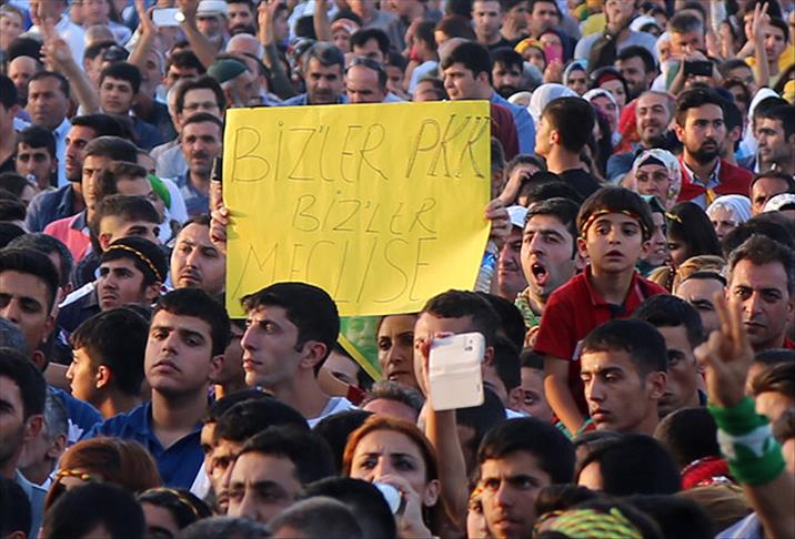 Yapılan konuşmaların ardından verilen konser ve havai fişek gösterisiyle devam eden kutlamalarda bir kişinin taşıdığı, partinin seçim sloganını terör örgütü PKK'ya uyarlanmış hali olan "Bizler PKK, bizler meclise" yazılı döviz dikkati çekti.