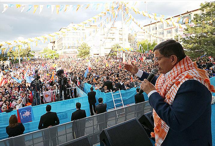 Partisinin Burdur mitinginde vatandaşlara hitap eden Davutoğlu, seçim kampanyasının ilk gününde Erzurum'da siyasi liderlere, "Birbirimizi eleştirelim. Ama saygı konusunda kusur göstermeyelim, hakaret etmeyelim. Şiddet kullanılmasın, kimse nefret dili kullanmasın" diye çağrıda bulunduğunu hatırlattı.