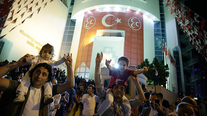 MHP Genel Merkezi önünden araçlarıyla geçen bazı vatandaşlar da korna çalarak partililere destek verirken, kalabalığın ilerleyen saatlerde daha da artması bekleniyor.