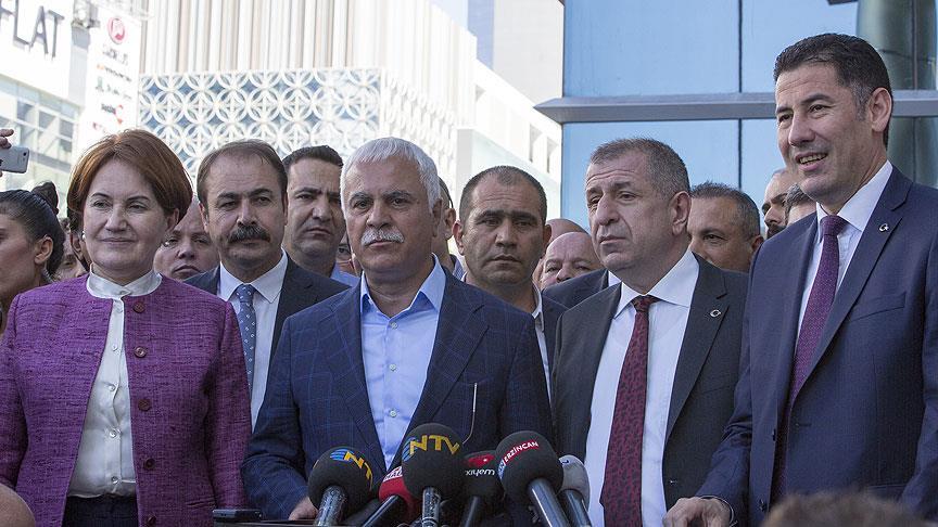 AA muhabirinin edindiği bilgiye göre, Sinan Oğan, Meral Akşener, Koray Aydın ve Ümit Özdağ'ın katıldığı toplantıda konuşulacak konuların başında, delegelerden yeniden imza toplanması geliyor. Muhalifler, yeniden imza toplanması kararı alınması halinde, iki günde delege imzalarının tamamlanarak, bir ay içerisinde de seçimli olağanüstü kongreye gidilebileceği görüşünü savunuyor.