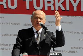 Osmaniyelilerden, kendileri ile yürümeleri için söz vermelerini isteyen Bahçeli, "Ankara'daki haram ve ihanet iktidarının elebaşlarının", Osmaniye'den yükselen ses karşısında köşe bucak saklanacaklarını öne sürdü.