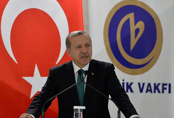 Erdoğan, "Ümmetin parçalanması için gayret edenlere karşı dik durmaya mecbur olduğumuzu özellikle hatırlatmak istiyorum. Bunun bizim için bir vecibe olduğunu hatırlatmak istiyorum. Ne yazık ki bunun gayreti içerisinde olanlar var" dedi.
