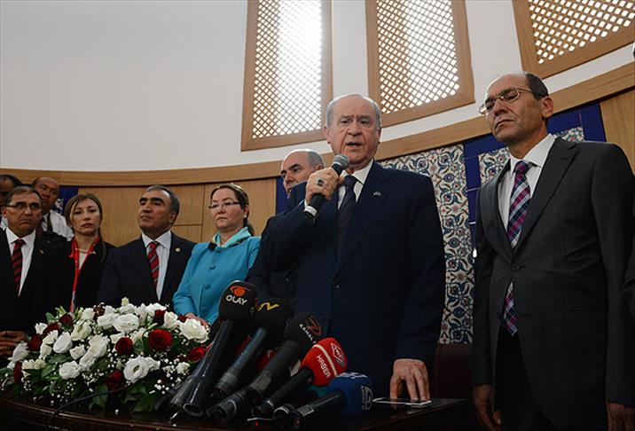 "Milliyetçi Hareket Partisi olarak, Uzlaşma Komisyonu'nun devamını istemekteyiz. Her madde tartışılmalı, bir süre kısıtlamasına gidilmemelidir. Çünkü millet iradesine dayalı bir anayasanın ortaya konması ancak bununla mümkün olabilir. Bunun dışında Adalet ve Kalkınma Partisi, PKK, BDP işbirliğine Cumhuriyet Halk Partisi de eklenmek suretiyle bir anayasa değişikliğini düşünüyorlarsa ilk yapacakları şey, uzlaşma masasından kalkmak olmalı ve uzlaşmanın dışında nasıl bir anayasa değişikliği düşünüyorlarsa millete sunmak suretiyle Meclis'e getirmelidirler. Bunun dışındaki bir konuyu Milliyetçi Hareket Partisi kabullenmemektedir."