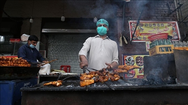 Kovid-19 önlemleri sebebiyle restoranlarda yemek yemenin yasak olduğu Pakistan'da halk, iftara saatler kala evlerine sokak atıştırmalıkları götürebilmek için satıcıların önünde kuyruklar oluşturuyor.02 Mayıs 2021