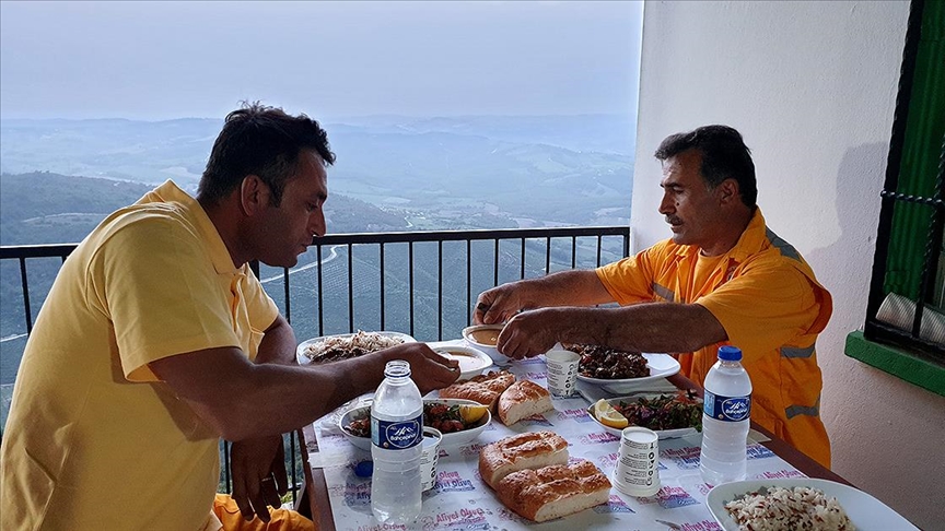 Ramazanı da yaklaşık 650 metre yüksekliğindeki tepeye konuşlu kulede geçiren "yangın bekçileri", iftar ve sahurlarını ailelerinden uzakta mesai arkadaşlarıyla yapıyor.