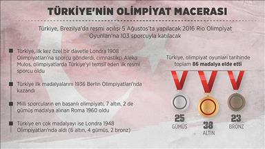 2016 Rio Olimpiyatları'na 103 sporcuyla katılacak Türkiye, olimpiyat oyunları tarihinde en çok madalyayı güreş branşından kazandı.