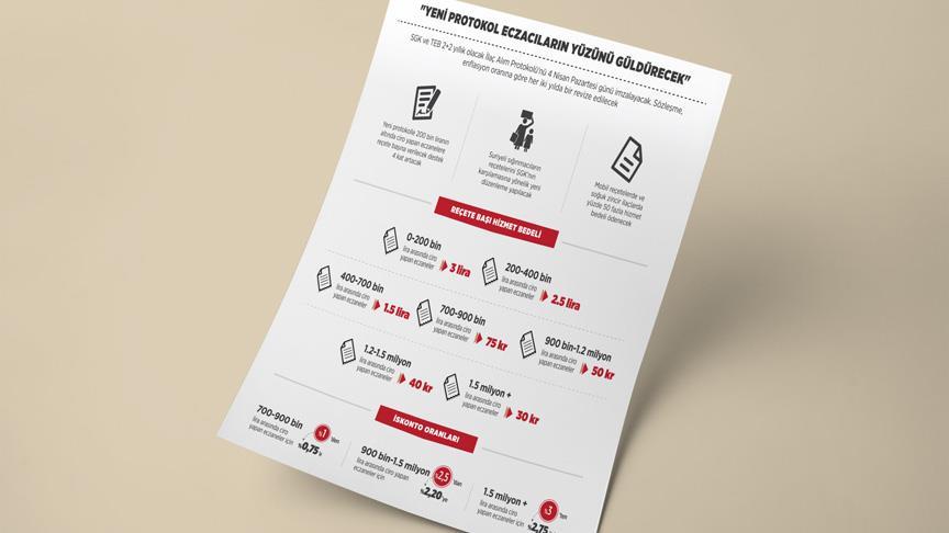 Sosyal Güvenlik Kurumu (SGK) ile Türk Eczacıları Birliği (TEB), ilaç alım protokolü konusunda anlaştı. Protokolle en büyük destek, düşük ciro yapan eczanelere sağlandı. Anlaşmaya göre, yıllık 200 bin liranın altında ciro yapan eczanelerin reçete başı ücreti 4 kat artarak 75 kuruştan 3 liraya yükselecek.