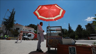 Edirneli Kudret Gezen, yapımını dedesinden öğrendiği Osmanlı macununu Sultan II. Bayezid Külliyesi Sağlık Müzesi'nin bahçesinde seyyar arabasında satıyor.28 Temmuz 2022