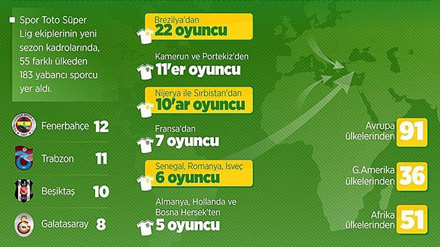 18 takım 55 ülke 183 futbolcu