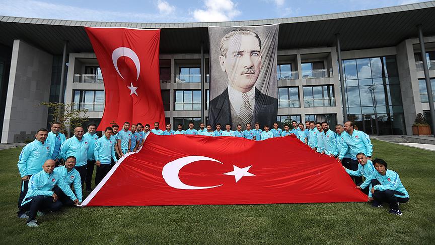2018 FIFA Dünya Kupası Avrupa Elemeleri I Grubu'nda Ukrayna ve Hırvatistan ile oynayacağı maçların hazırlıklarını Türkiye Futbol Federasyonunun Riva'daki Hasan Doğan Milli Takımlar Kamp ve Eğitim Tesisleri'nde sürdüren milli takımda teknik heyet ve futbolcular, 30 Ağustos Zafer Bayramı dolayısıyla Türk bayrağı ile poz verdi.