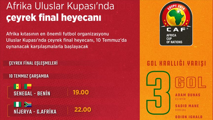 Afrika Uluslar Kupası'nda çeyrek final programı şöyle: