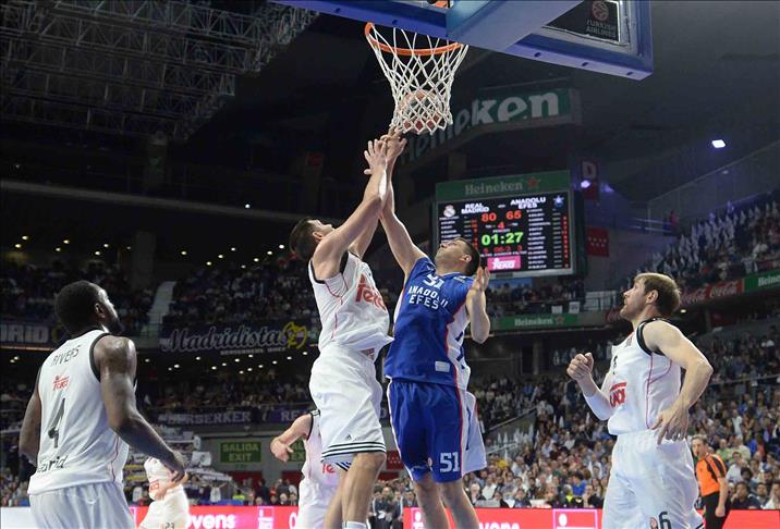 Anadolu Efes Basketbol Takımı, THY Avrupa Ligi play-off çeyrek final ilk maçında deplasmanda İspanyol ekibi Real Madrid'e 80-71 yenilerek seride 1-0 geriye düştü.