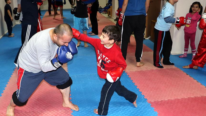 Kick boks antrenörü Abuşoğlu, AA muhabirine yaptığı açıklamada, eğitimlere ilk başladıklarında babaların çocuklarını salona getirdikten sonra vakitleri olduğu sürece tribünden çalışmaları izlediğini belirtti.