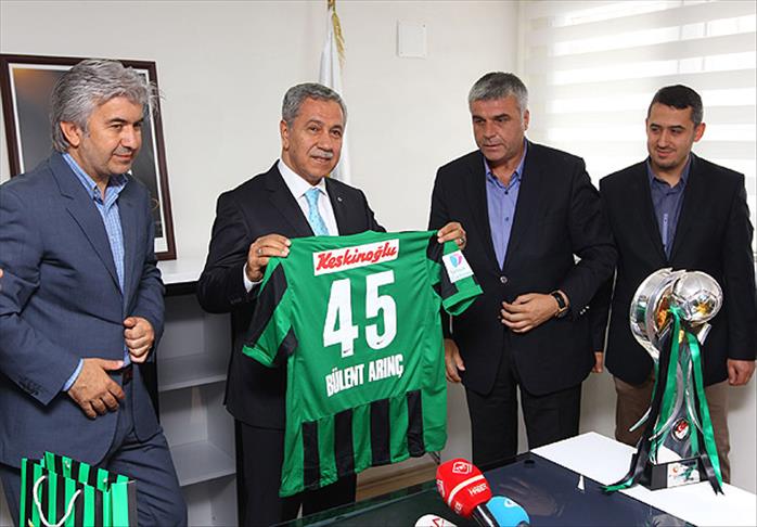 Arınç, Akhisar Belediyespor Yılmaz Atabarut Tesisleri'ni ziyaret ederek, bu sezon Bank Asya 1. Lig'de elde ettiği şampiyonlukla Spor Toto Süper Lig'e yükselen Akhisar Belediyesporlu futbolcular, teknik heyet ve kulüp yöneticileriyle biraraya geldi.
