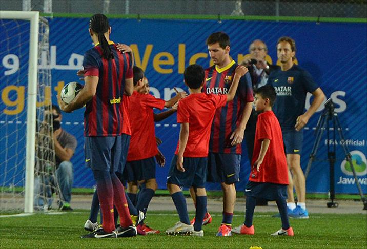 ''Tata'' lakaplı Arjantinli teknik direktör Gerardo Martino yönetimindeki Barcelona takımı, El Halil kentindeki El Dura Stadı'na Filistinli futbolseverlerin yoğun tezahüratları arasında çıktı. Aralarında Messi, Neymar, Xavi, Iniesta, Pique ve Dani Alves gibi as takım oyuncularının da yer aldığı antrenmanda Filistinlilerin sevgi gösterilerinde bulunduğu futbolcular, çocuklarla fotoğraf çektirerek, imza dağıttı.