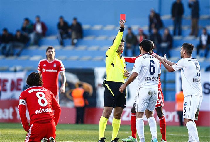 Yusuf Ziya Öniş Stadı'ndaki mücadelenin 21. dakikasında Adana Demirsporlu Hakan Söyler'in, Beşiktaşlı futbolcu Veli Kavlak'a tehlikeli hareketi sonrası hakem Suat Arslanboğa, konuk takım oyuncusuna direkt kırmızı kart gösterdi.