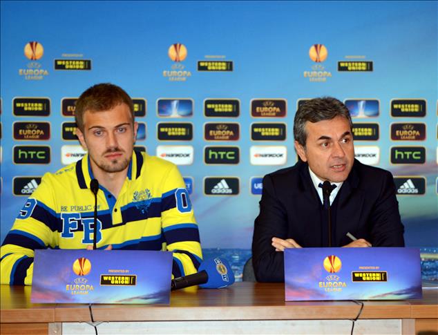 Fenerbahçe Teknik Direktörü Aykut Kocaman, maçın oynanacağı Neman Stadı'nda kalecilerden Mert Günok'un da katılımıyla bir basın toplantısı düzenledi.