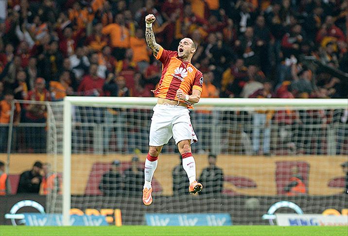 Fenerbahçe karşısında Galatasaray'ı galibiyete taşıyan gollere imzasını atan Wesley Sneijder, tribünleri ayağa kaldırdı.