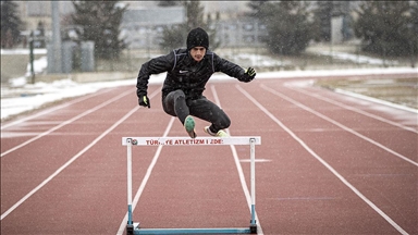 Hayata adeta atletizmle tutunan ve 8 yaşından beri bu sporu yapan Muhammet Amaç, hava sıcaklığının sıfırın altına düştüğü durumlarda bile çalışmalarını aksatmıyor.