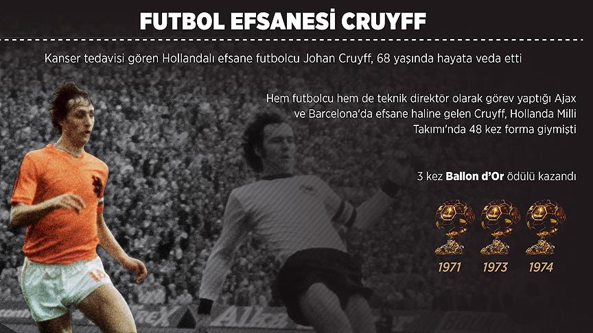 Yakalandığı kanser hastalığına yenik düşerek 68 yaşında hayata veda eden Cruyff için Avrupa'nın birçok kulübünden, futbolculardan ve siyasetçilerden başsağlığı mesajları geldi.