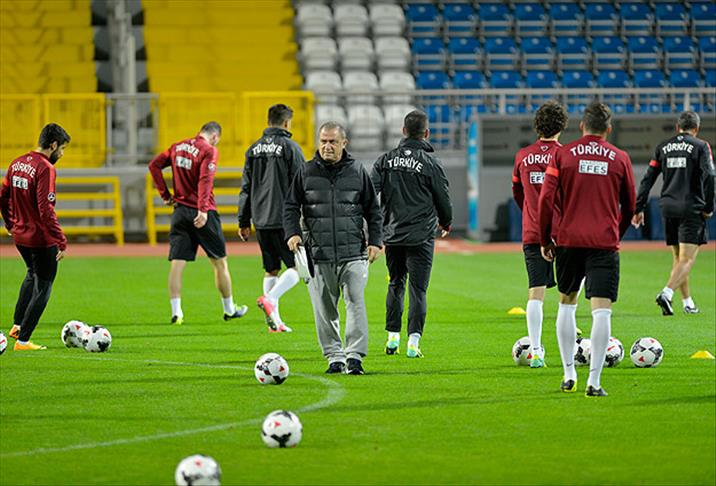 Bu arada, çift kale maçtan önce Terim, bir süre futbolcularıyla saha ortasında toplantı yaptı.