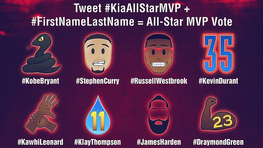 Kanada'nın Toronto kentinde düzenlenecek NBA All-Star'da en değerli oyuncu (MVP) ödülü, bu yıl ilk kez Twitter üzerinden yapılacak oylamayla seçilirken, oyuncu ve antrenörlerin emojileri de basına dağıtıldı.