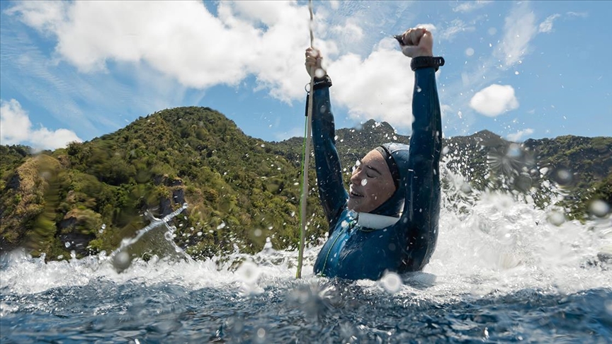 Dünya serbest dalış rekortmeni Ercümen, Dominika'da 10 ülkeden sporcunun katıldığı turnuvada sabit ağırlık, çift palet ve paletsiz ip destekli kategorilerinde ilk sıraya yerleşerek şampiyon oldu.