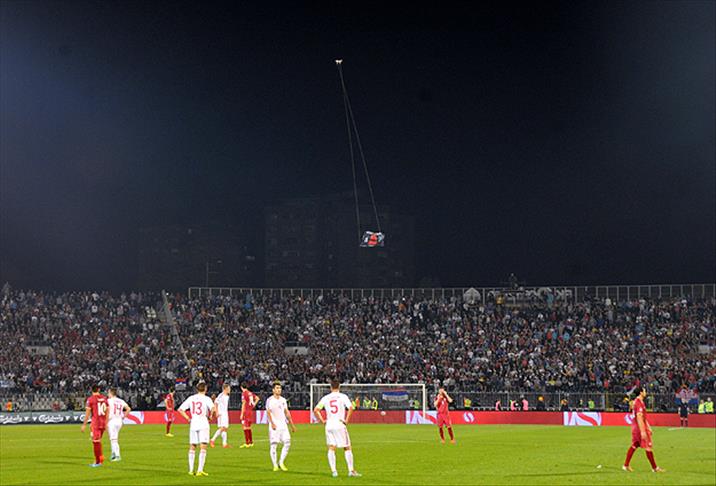 Sırbistan ile Arnavutluk arasında Belgrad'da oynanan karşılaşmanın 44. dakikasında üzerinde 1912 yılında Arnavutluk'un bağımsızlığını ilan eden İsmail Kemali'nin resminin yer aldığı ve "Büyük Arnavutluk''u simgeleyen bayrağın bırakılması üzerine olaylar çıkmıştı.