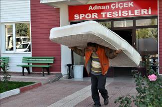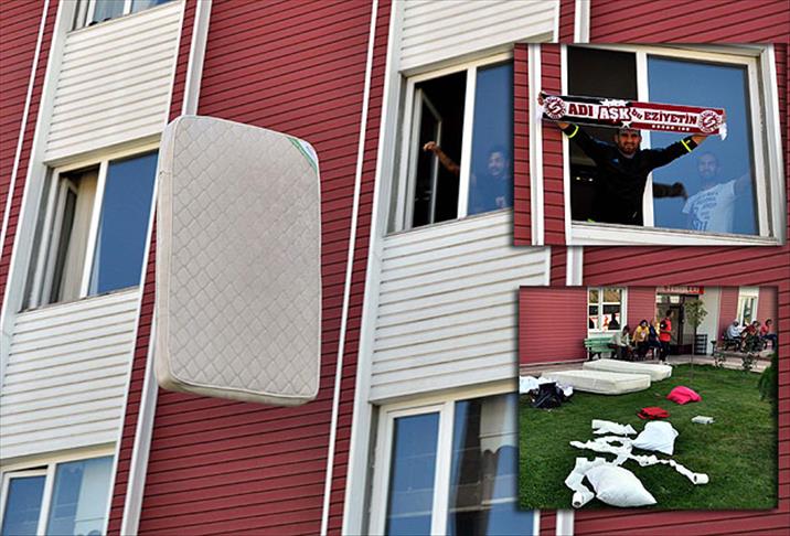 Tokatspor'un futbolcuları, odalarında bulunan televizyon, yatak ve benzeri eşyaları pencereden atarak haciz işlemine tepki gösterdi.