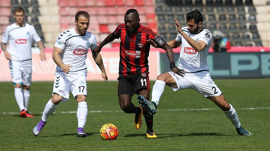 Spor Toto Süper Lig'in 25. haftasındaki Gaziantepspor-Torku Konyaspor maçının ilk yarısı konuk ekibin 1-0 üstünlüğüyle sona erdi.
