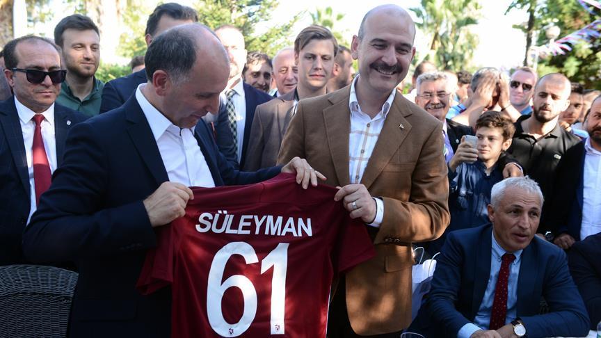 Konuşmaların ardından Başkan Muharrem Usta, Bakan Soylu'ya üzerinde ismi yazılı 61 numaralı Trabzonspor forması hediye etti.