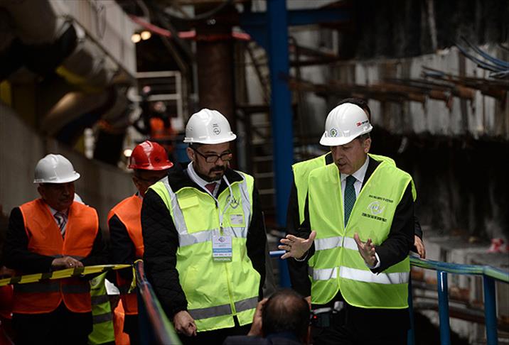 Erdoğan, tünelin önümüzdeki yılın sonunda tamamlanacağını belirterek, İstanbul Boğazı'nın altından çalıştığına hep birlikte şahit olunacağını söyledi. Erdoğan, bir süre daha şantiye alanında incelemelerde bulundu.