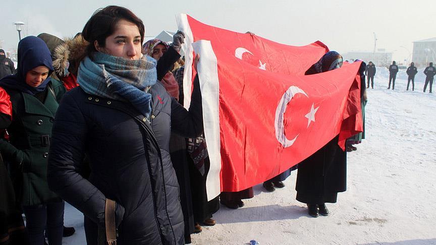 Ağrı İbrahim Çeçen Üniversitesi (AİÇÜ) Öğrenci Konseyince düzenlenen protestoda, Fen Edebiyat Fakültesi önünde yüzlerce öğrenci soğuk havaya rağmen ellerindeki Türk bayraklarıyla "Türkiye teröre mezar olacak", "şehitler ölmez, vatan bölünmez" ve "kahrolsun PKK" sloganları atarak terör örgütünü lanetledi.