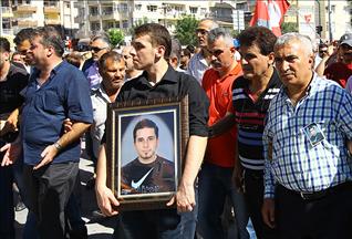Hatay'da izinsiz gösteriler sırasında hayatını kaybeden Ahmet Atakan'ın cenazesinin toprağa verilmesinin ardından eylem yapmak isteyen gruba polis müdahale etti.