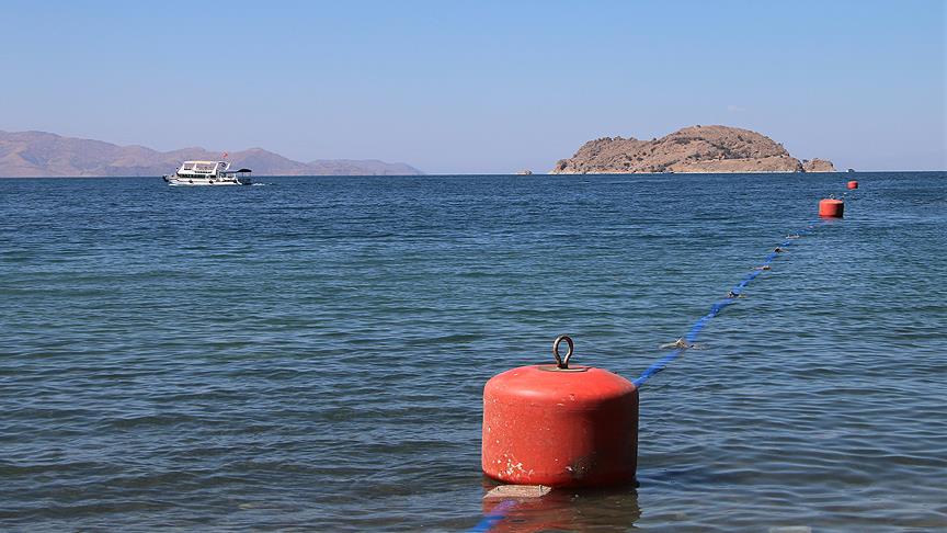 Van'ın Gevaş ilçesindeki Akdamar Adası'na tatlı su taşınması için yürütülen çalışmalar kapsamında göle boru batırma işlemi yapıldı.