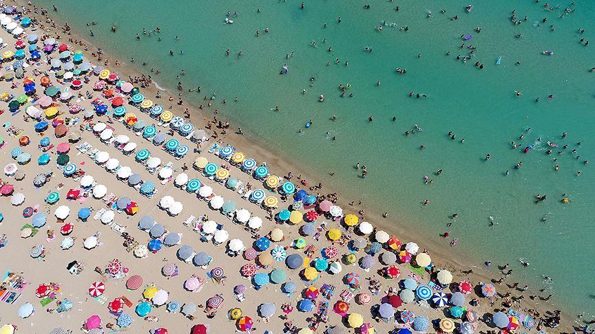 Halka açık plaja vatandaşların güneşten korunmak için getirdiği farklı renklerdeki şemsiyeler, altın rengi kumlar üzerinde renk cümbüşü oluşturuyor. Plajı yer yer tamamen kaplayan şemsiyelerin hava çekimlerindeki görünümü, kumun üzerine sıralanmış boncukları andırıyor.