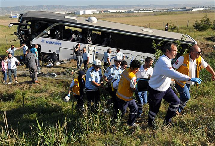 Yolun kenarındaki su kanalına çarparak durabilen otobüsün sürücüsü Hıdır Teber olay yerinde hayatını kaybetti. Kazada 3'ü ağır 27 yolcu yaralandı.