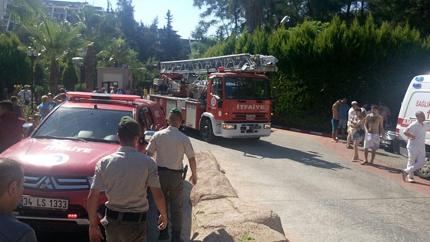 İtfaiye ekipleri, odalarında mahsur kalan turistleri, yangın merdiveniyle tahliye etti.