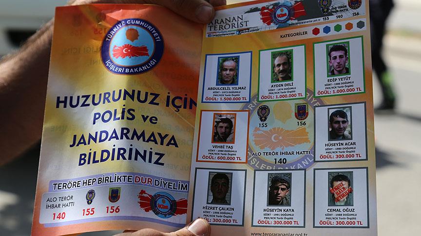 Siirt Valiliği, başlarına ödül konulan terör örgütü PKK üyelerinin fotoğraflarının yer aldığı 100 bin Türkçe ve Kürtçe broşür bastırdı.