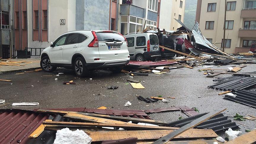 Artvin'in merkeze bağlı Dere Mahallesi'ndeki sitede bulunan 5 katlı apartmanın çatısı, kuvvetli rüzgar nedeniyle uçtu.