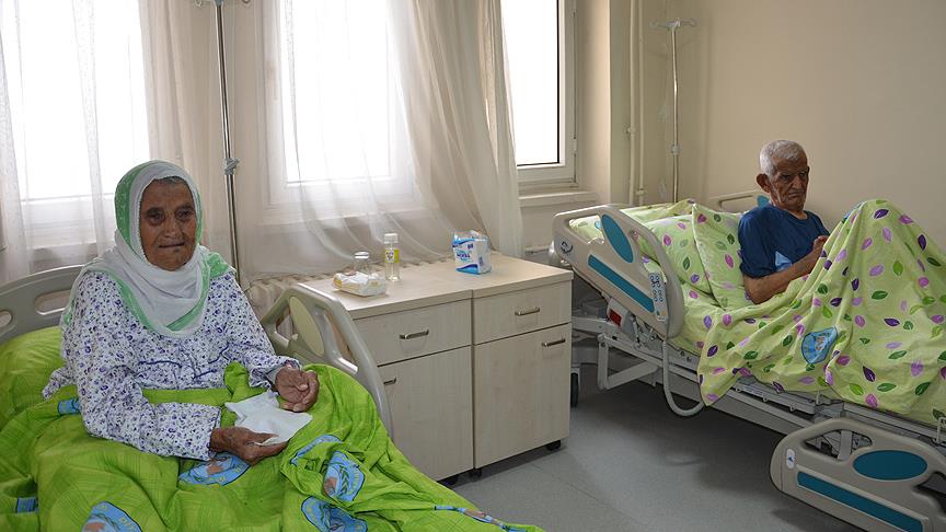 Teröristlerin ayrılmalarına izin vermediği Hasırlı Mahallesi'ndeki evlerinden 5 gün önce jandarma ekiplerince alınarak güvenli bölgeye taşınan Ahmet (85) ve eşi Ayşe Aslan, Selahaddin Eyyubi Devlet Hastanesinde tedavi altına alındı.