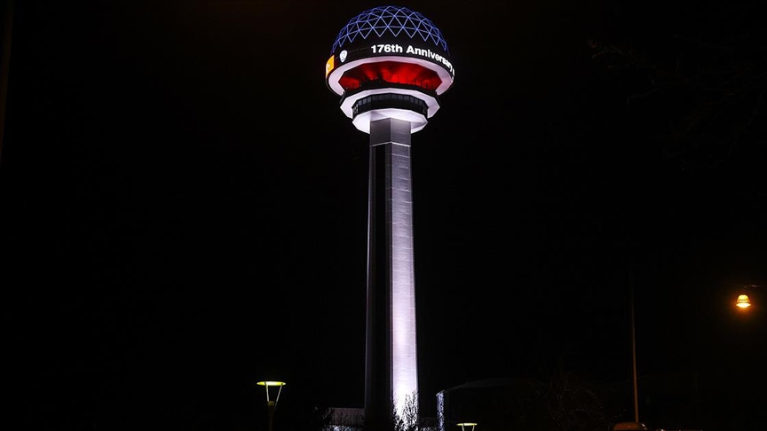 Atakule'ye 'polis çakarı' ışıklandırması