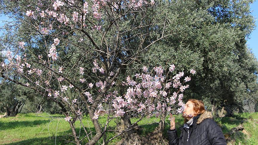 Balıkesir'in Kepsut ilçesinde, hava sıcaklıklarının mevsim normallerinin üzerinde seyretmesi nedeniyle yaklaşık 2 ay erken çiçek açan badem ağaçları, olası don riski yüzünden üreticiyi endişelendiriyor.