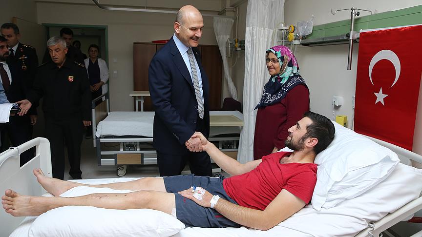 Burada tedavi gören gazilerle yakından ilgilenen Soylu, onlarla bir süre sohbet etti. Soylu, geçmiş olsun dileklerini ilettiği gazilere bir ihtiyaçları olup olmadığını sordu.