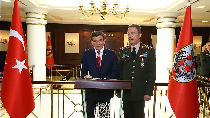 Başbakan Davutoğlu, 2 saat 30 dakika süren ziyaretin ardından yaptığı açıklamada, devletlerin kurumları ve teamülleri ile kaim olduğunu vurgulayarak, Türkiye Cumhuriyeti’nin bekası söz konusu olduğunda omurga kurumlarından birinin Türk Silahlı Kuvvetleri (TSK) olduğunu söyledi.