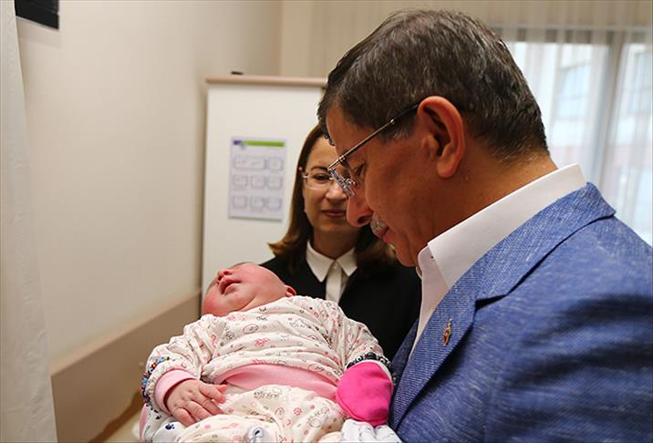 Başbakan Ahmet Davutoğlu'nun Başbakanlık Basın Merkezi'nce çekilin, Sakarya Üniversitesi Eğitim ve Araştırma Hastanesi Yeni Doğan Servisini ziyaretine ilişkin görüntülerinde, beraberinde Aile ve Sosyal Politikalar Bakanı Ayşenur İslam ile servisteki yeni doğum yapan annelerle bir araya geldiği görüldü.