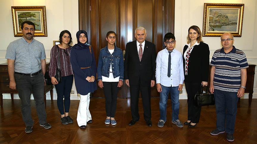Başbakan Binali Yıldırım, Temel Eğitimden Ortaöğretime Geçiş (TEOG) ikinci dönem sınavında, soruların tamamını doğru yanıtlayarak Türkiye birincileri arasında yer alan Muş'lu öğrencileri makamında kabul etti.
